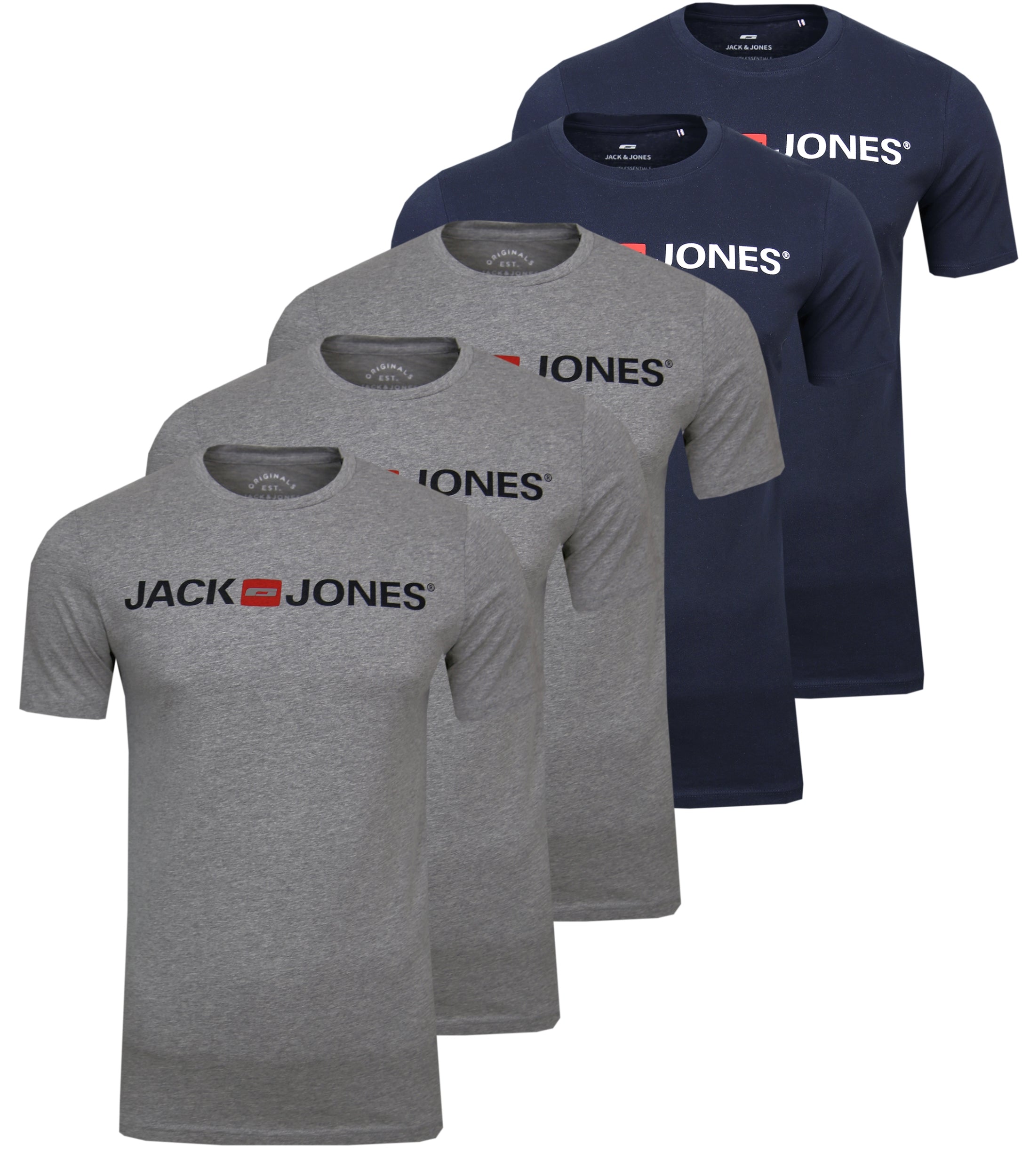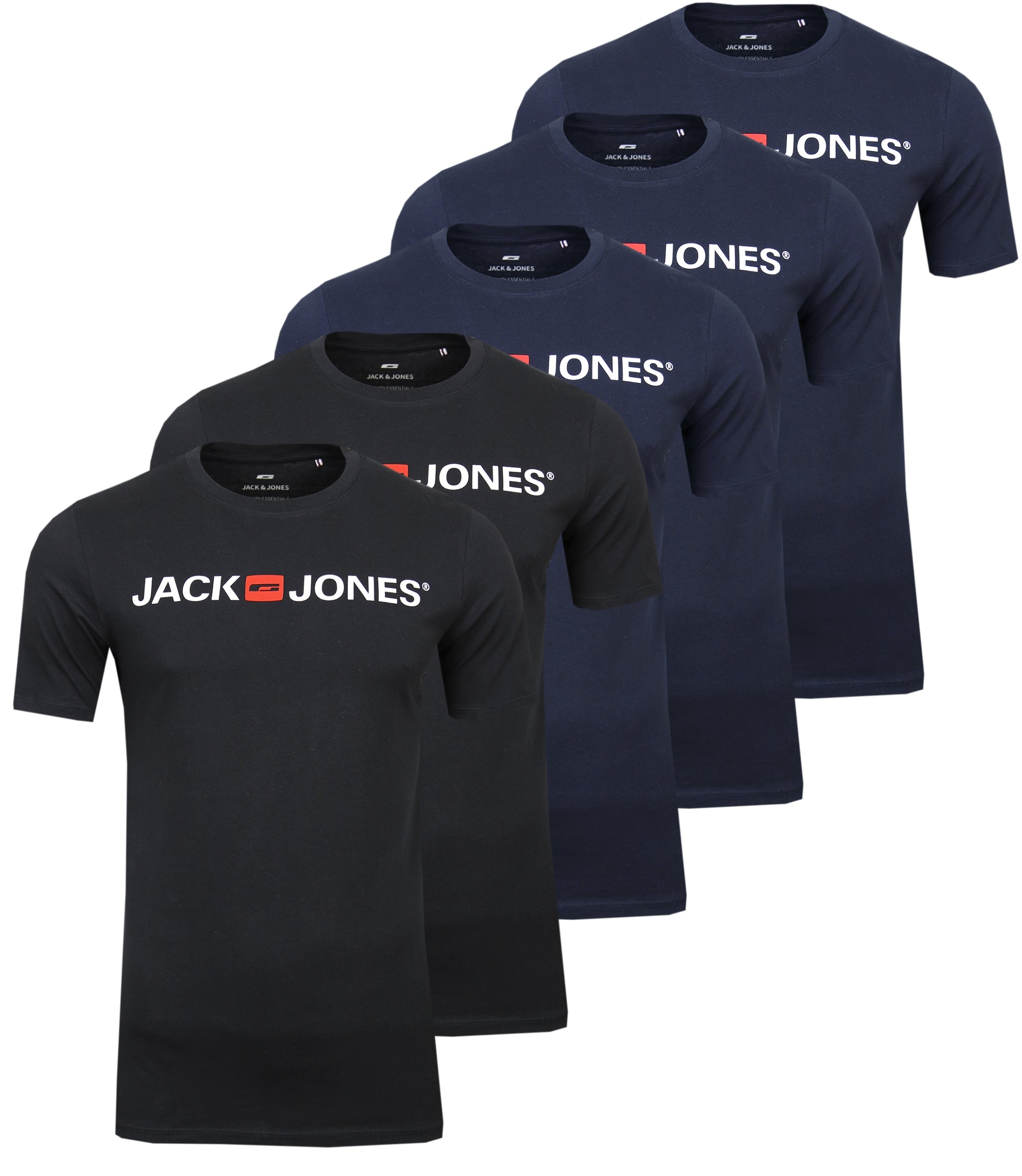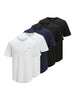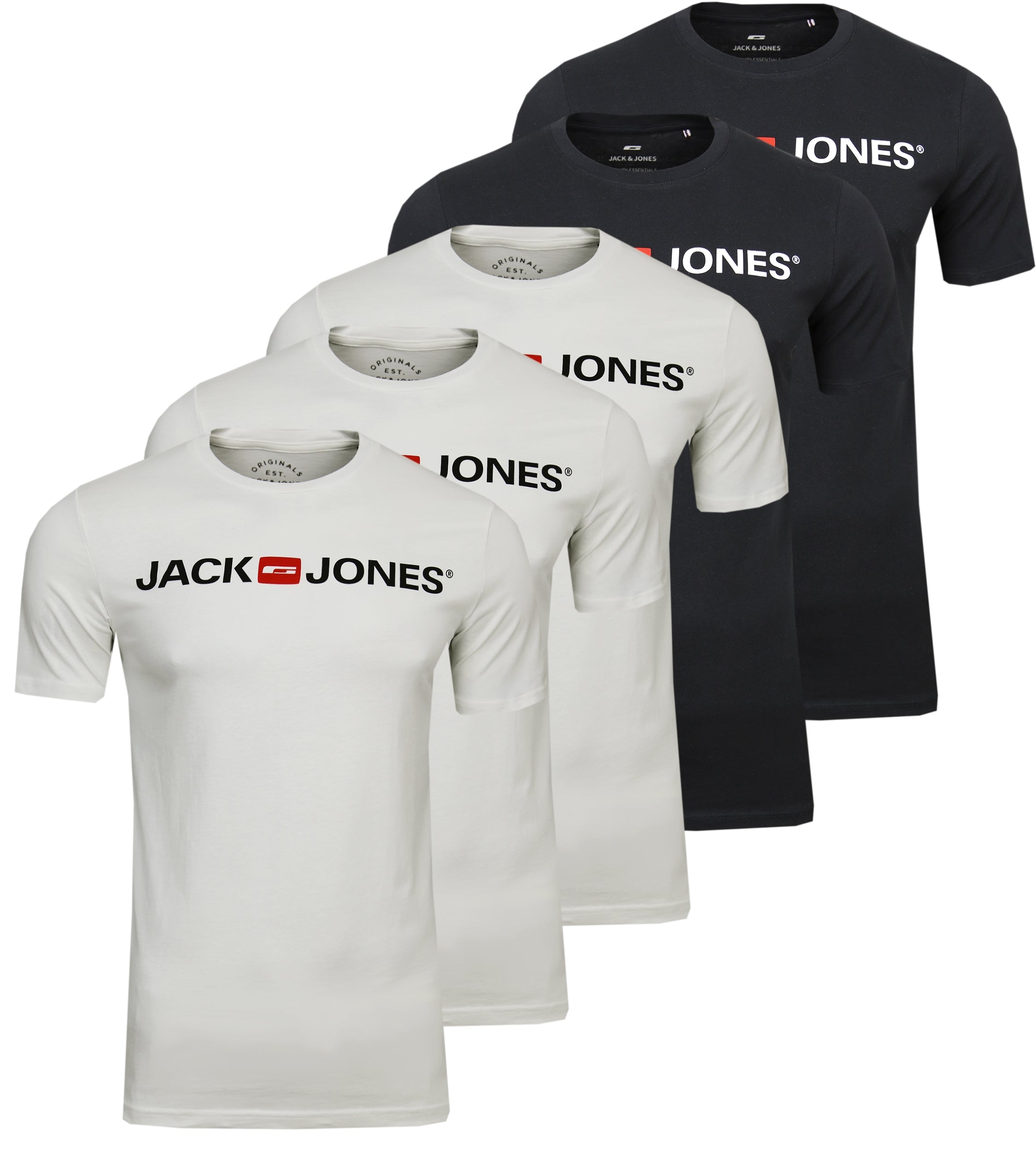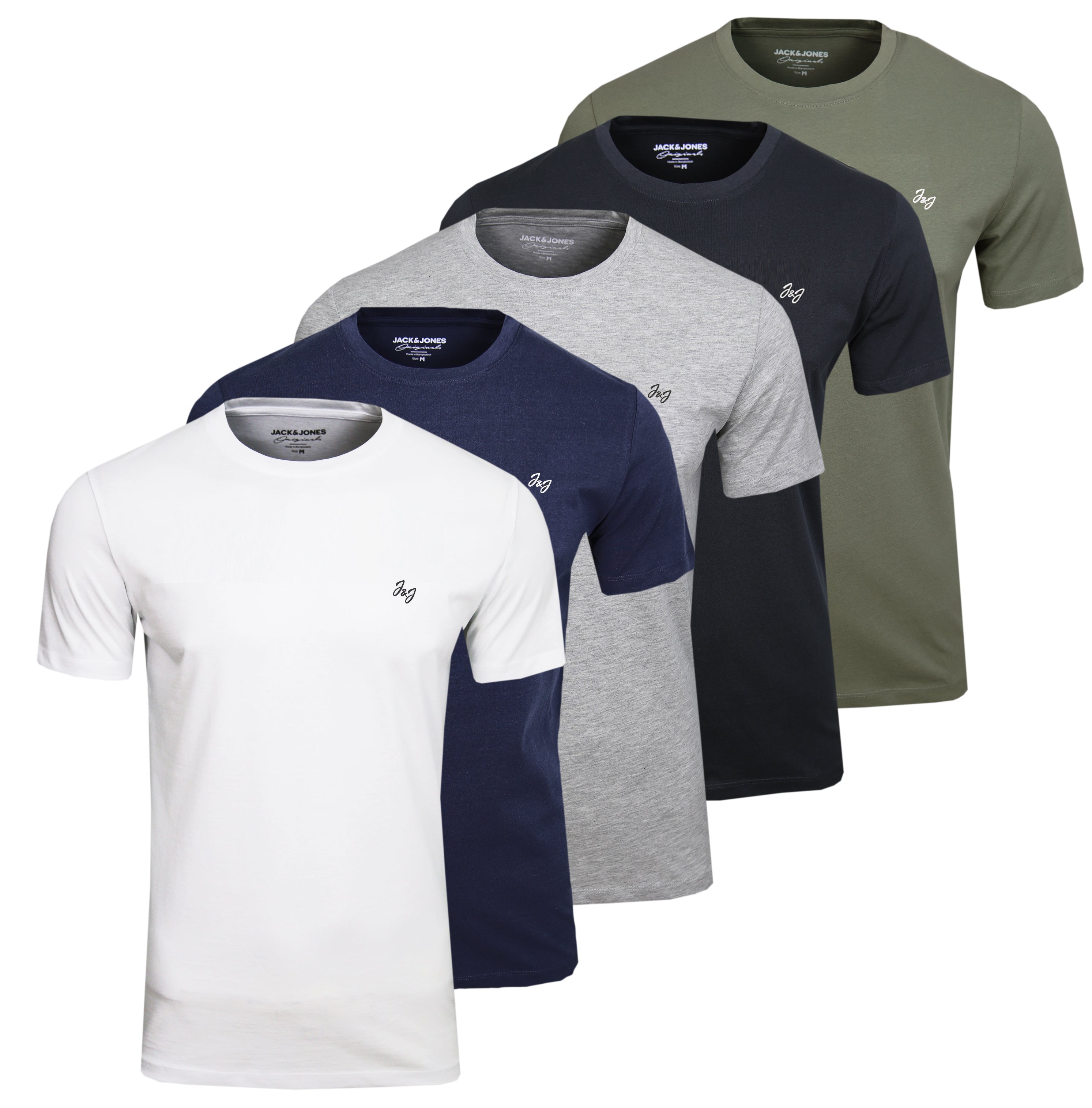 5er-Pack Essential Layer für jeden Style. Klassisches, unverwechselbares und elegantes Design. Hergestellt aus weichem Stretch-Baumwolljersey. Pflegeleicht und langlebig. Jack & Jones Printgrafiken. Kurze Ärmel. Rundhalsausschnitt. Material: 100 % Baumwolle. Slim-Fit-Schnitt.