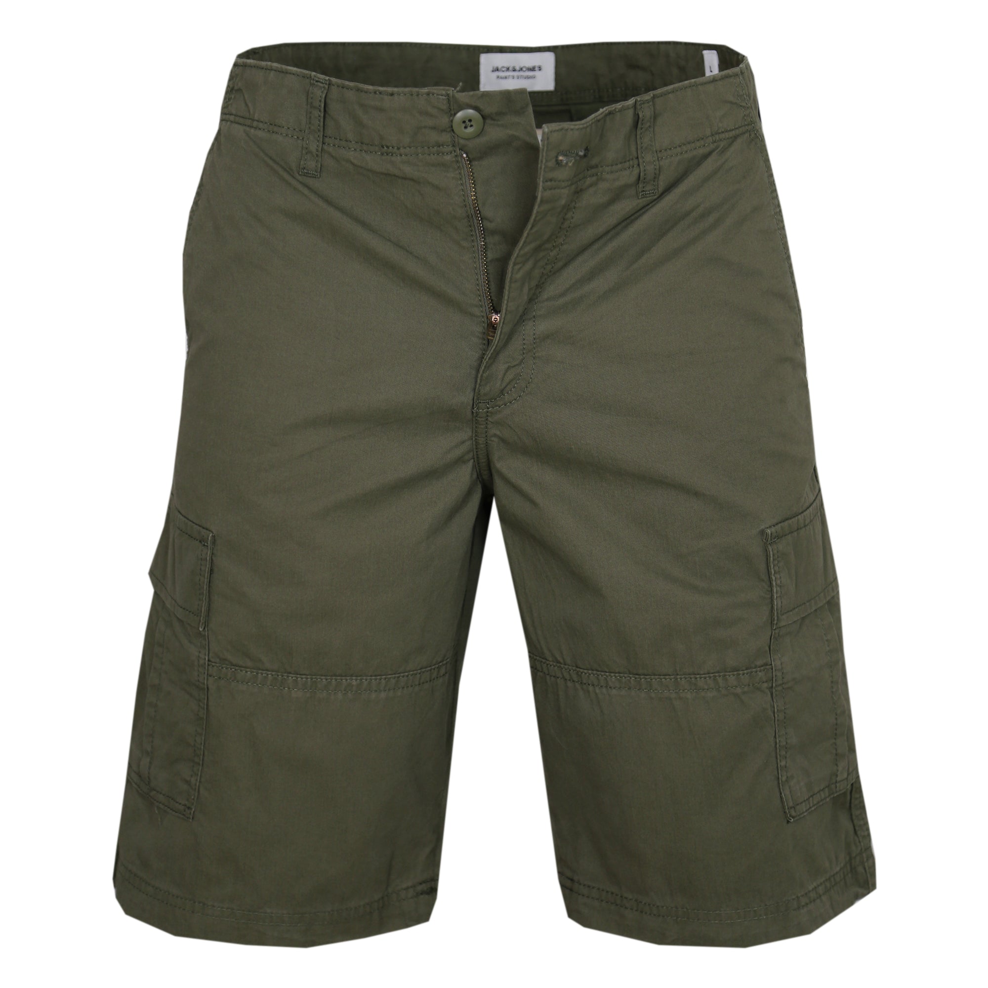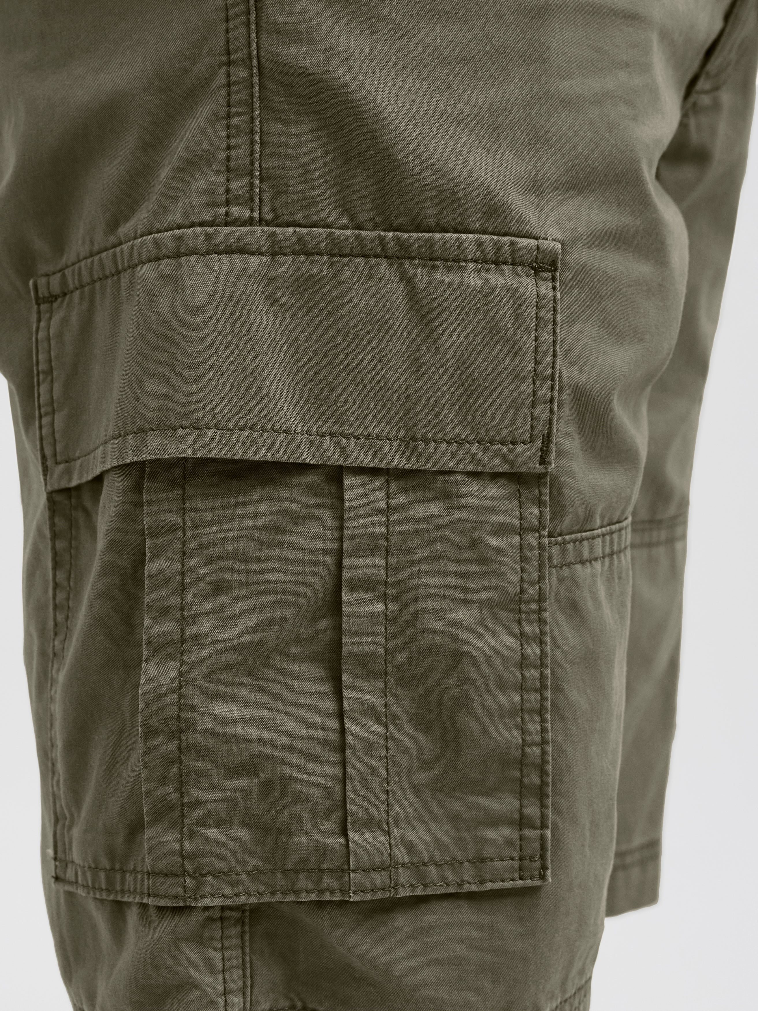 Die JACK & JONES Herren Mateo Cargo Shorts in Olive Night bieten mit ihrem robusten Webstoff und dem Relaxed Fit optimalen Tragekomfort für warme Tage. Die praktischen Utility-Taschen sorgen für ausreichend Stauraum, während der mittelhohe Bund und die lockere Beinöffnung einen lässigen Sommerlook unterstreichen. Ideal für alle, die Funktionalität und Stil verbinden möchten. Pflegeleicht bei 40°C Buntwäsche und einfach zu bügeln.