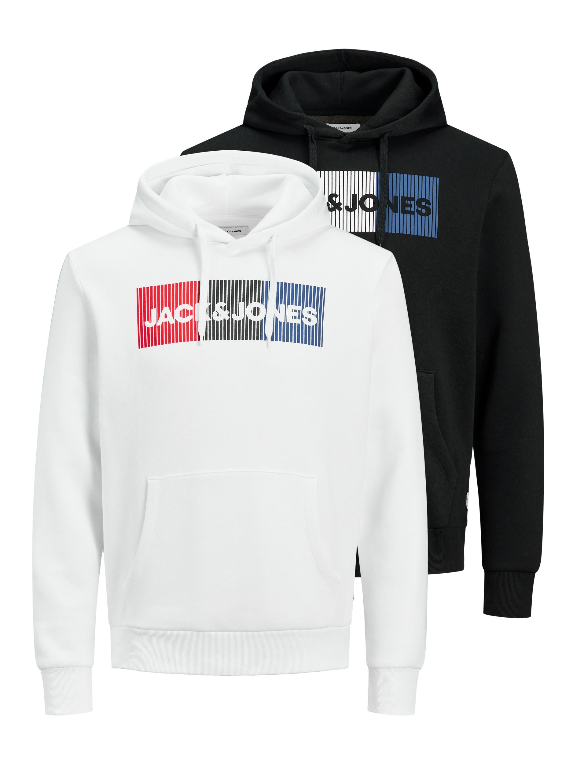 Dieses 2er-Pack einfarbiger JACK & JONES Hoodies überzeugt mit markantem Logo-Print und lässigem Schnitt. Die klassischen Hoodie-Taschen und der bequeme Pull-on-Verschluss sorgen für angenehmen Tragekomfort im Alltag. Hergestellt aus 70 % Baumwolle und 30 % Polyester bieten die Hoodies warme, weiche Qualität. Perfekt für einen entspannten Casual-Look mit Stil.