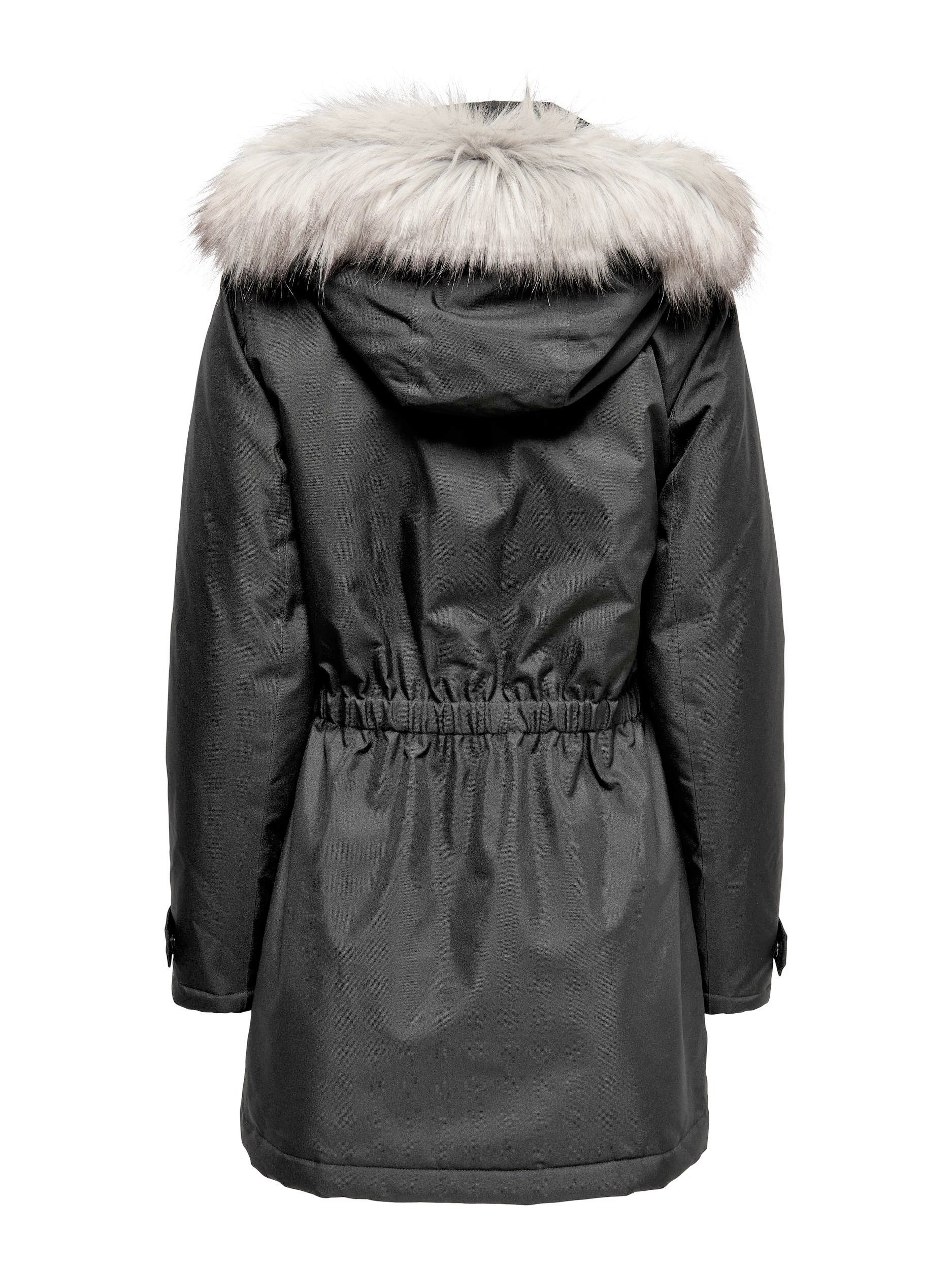 Bleiben Sie warm und stilvoll mit der zeitlosen ONLY Fries Parka mit Kunstfellkapuze. Die elastische Taille und die abnehmbare Kapuze bieten hohen Tragekomfort. Sportlich mit Jeans und Sneakern oder elegant mit Kleid und Stiefeln kombinierbar. Aus 100% Polyester mit verdecktem Reißverschluss, sichtbaren Knöpfen und Ripp an den Ärmeln.