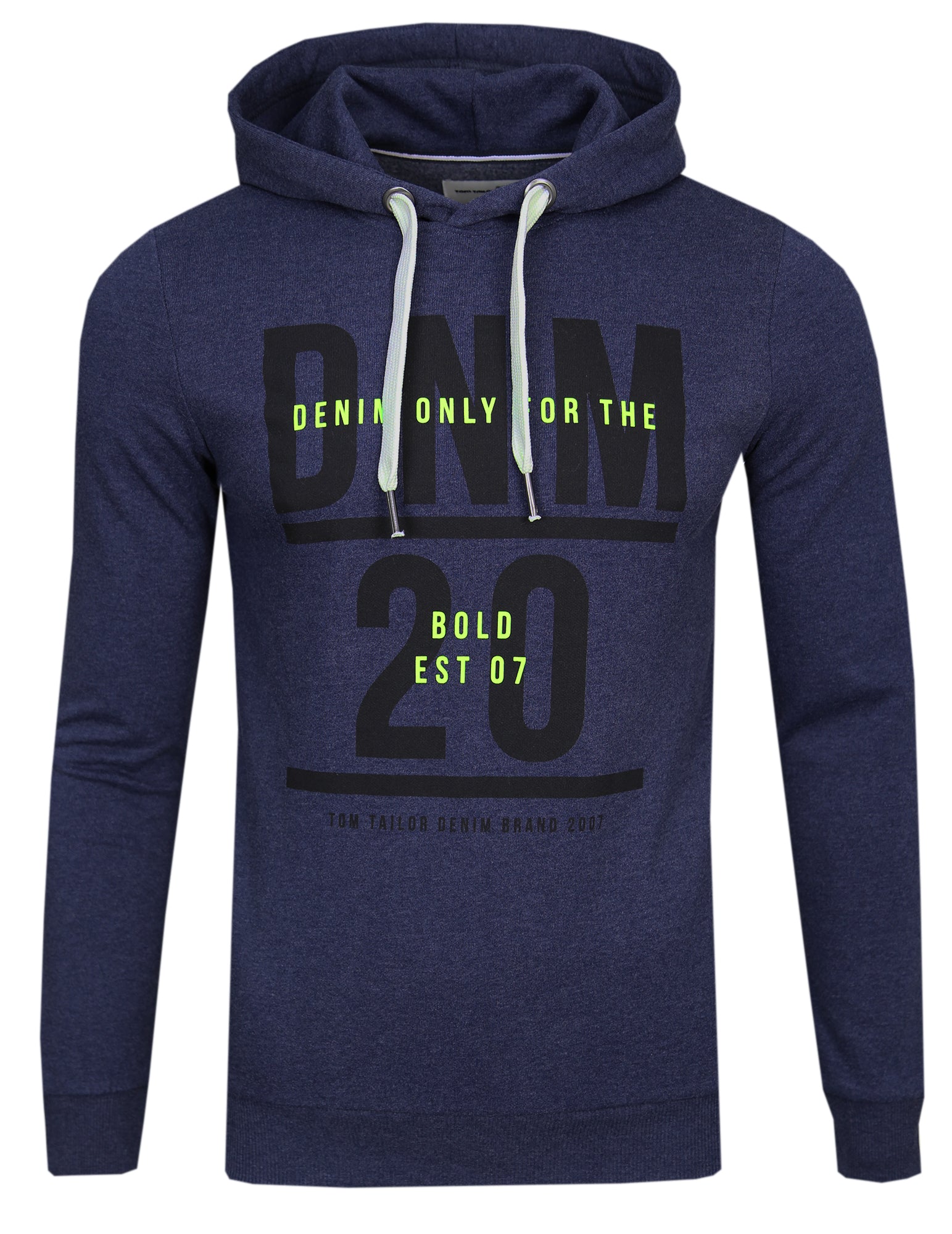 Der TOM TAILOR Denim Hoody überzeugt mit komfortablem Felpa-Material aus 95 % Baumwolle und 5 % Viskose, das weich und atmungsaktiv ist. Die langärmlige Kapuze mit praktischem Kordelzug schützt vor Wind und sorgt für eine individuelle Passform. Abgesetzte Rippblenden an Bund und Ärmeln bieten angenehmen Halt, während der modische Print vorne Ihrem Look einen besonderen Akzent verleiht. Ideal für lässige Tage, verbindet dieser Hoody Style und Bequemlichkeit perfekt.